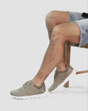 Men's sneakers. WATERPROOF Khaki Nobuck Leather. Lace-up Closure. Leather lining. Removable anatomical insole. Lightweight, flexible and strong EVA rubber sole. Heel height: 5 cm. 100% Made in Spain.